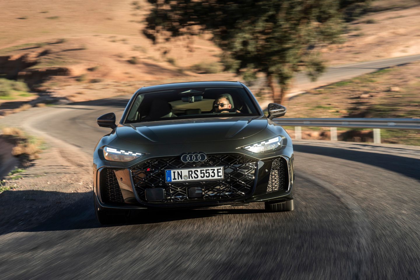 The dynamic composition is also broad. The ride is quite good. In the slackest damper mode – Comfort – there’s real absorption on poor road surfaces, without too much evidence that the fat anti-roll bars Audi has specified are causing the car to thump back and forth on the road. And we drove it on some pretty bad roads. In the ultra-rigid RS Sport mode, things are very different.