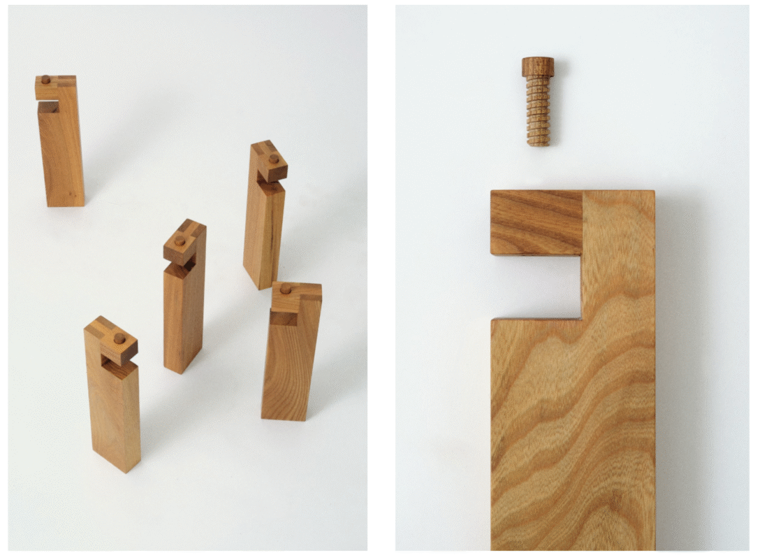 The furniture is handmade and produced in Stockholm, using material from elm trees felled due to disease, and each piece comes with coordinates indicating its origin.