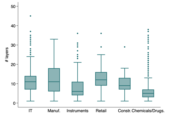 Average and median number of layers at US companies