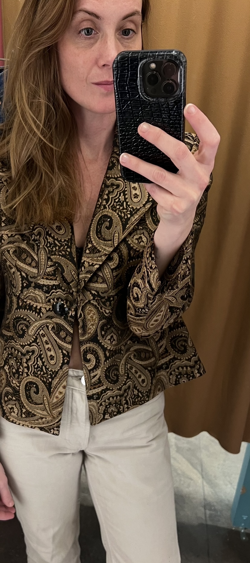 Brown and gold coordinated paislyk jacket.