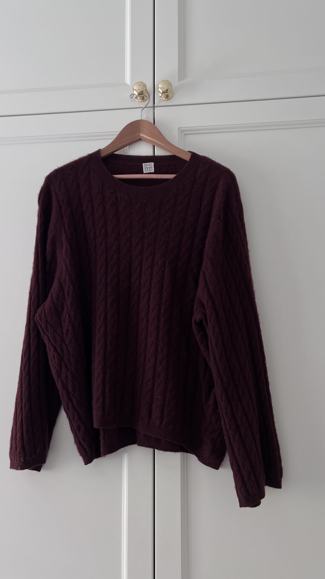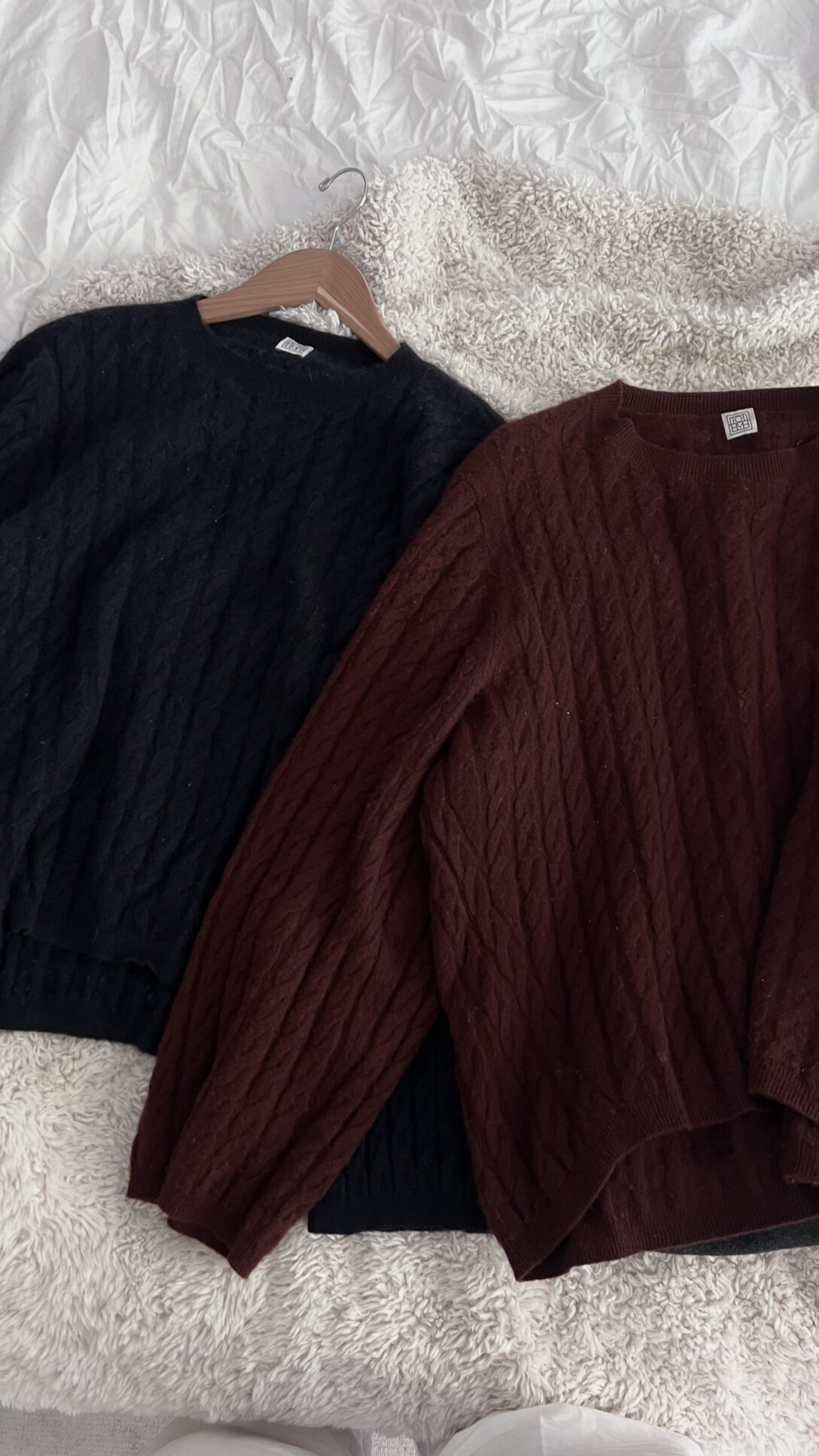 Two Toteme Cashmere Sweaters Cableknit Strlk Small. A navy and a burgundy/ brown.