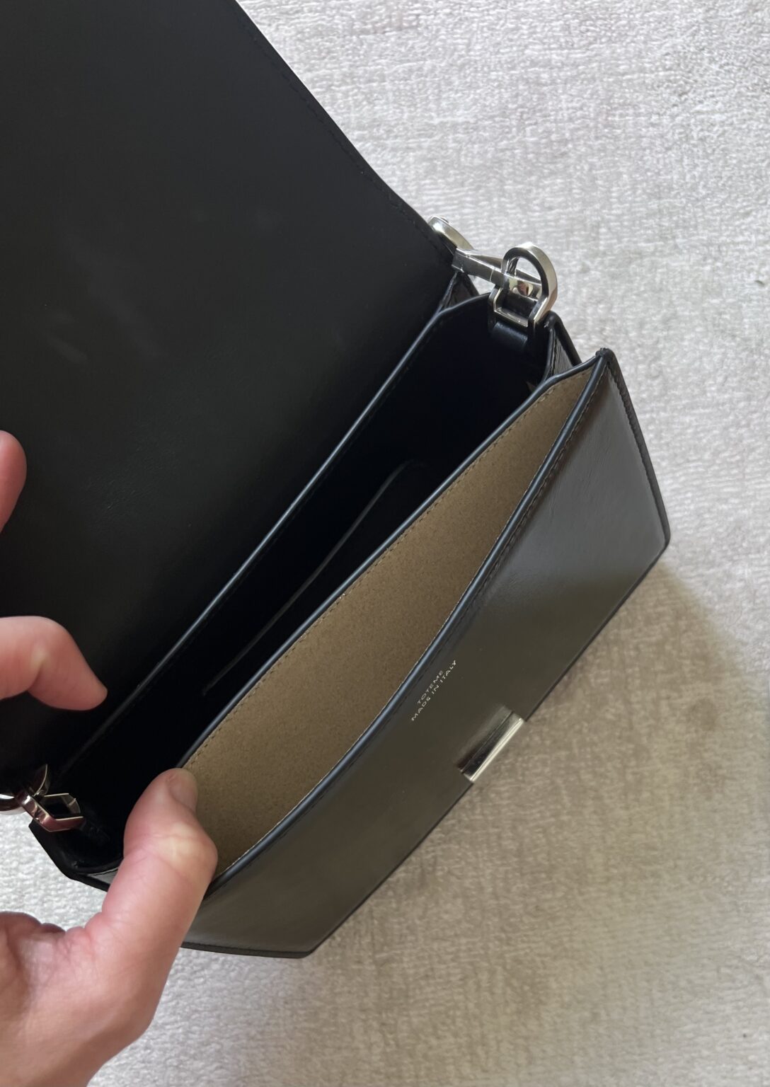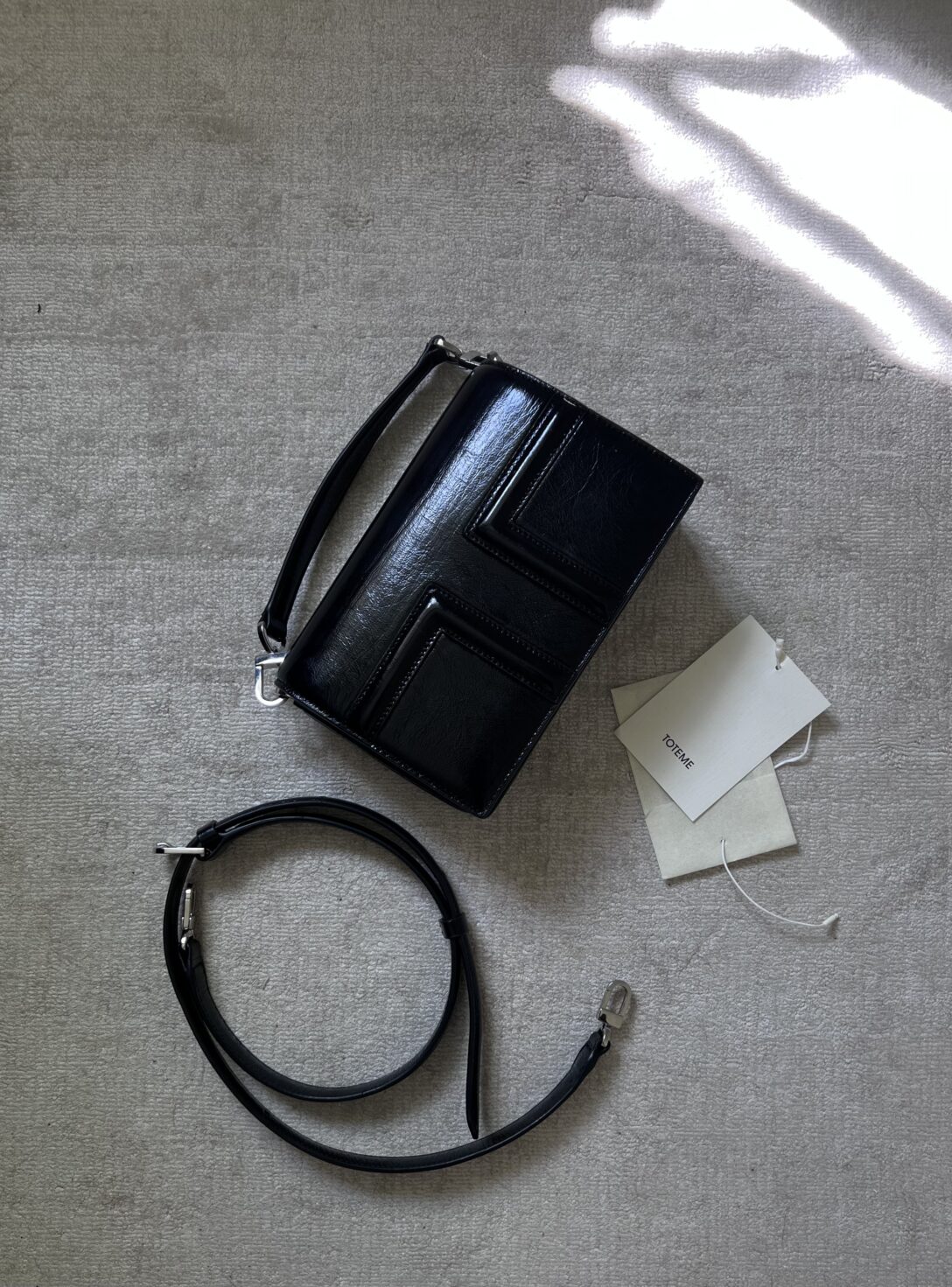 New toteme t flap bag in a napje lacquer. Comes with Dustbad, Strap and Vouchers. SEK 5900