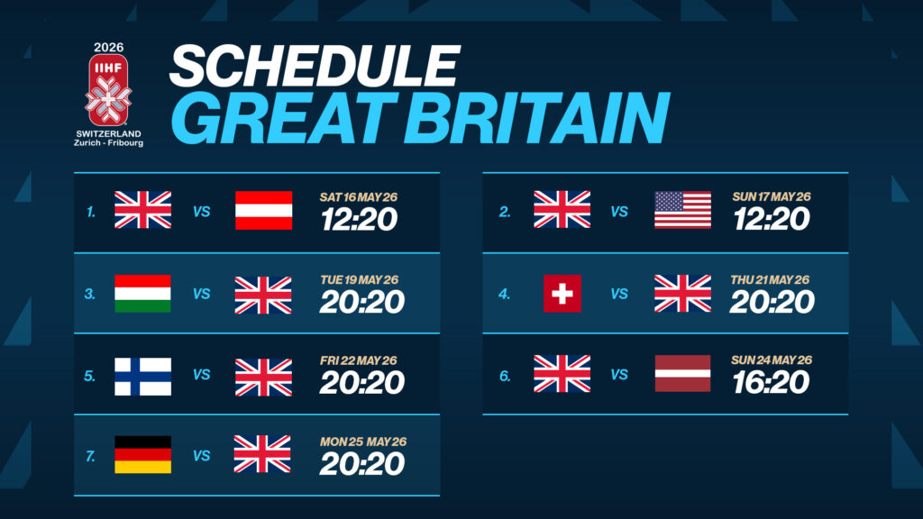 The schedule of Great Britain for the IIHF IIHF Ice Hockey World Championship 2026 has been confirmed.