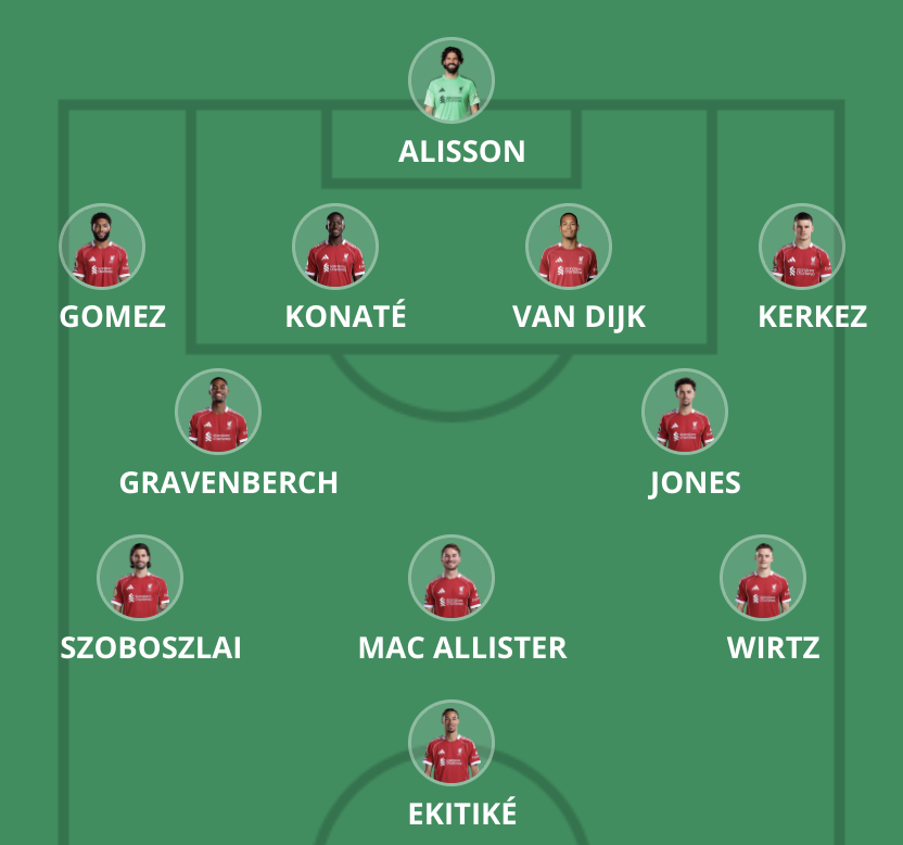 Szoboszlai, Mac Allister, Jones and Gravenberch would then fill the other midfield spots, with two playing further forward.