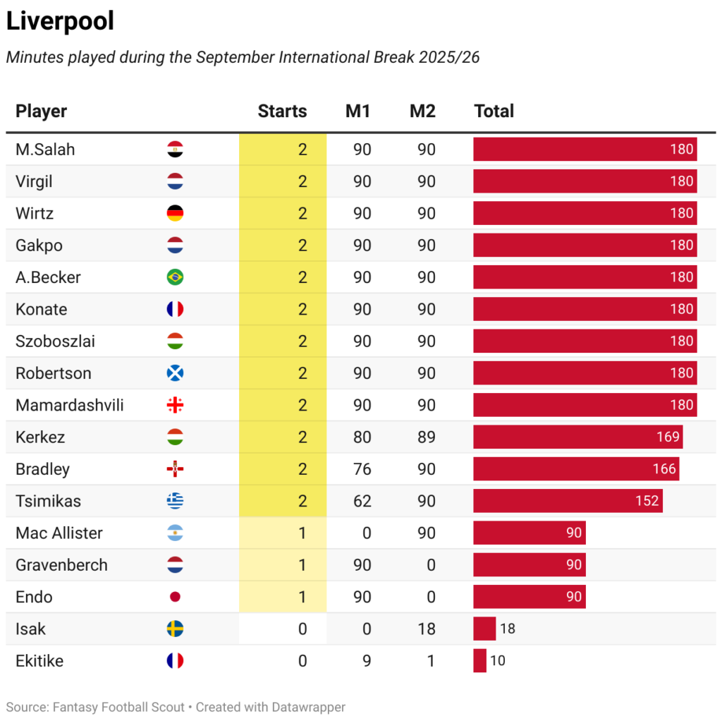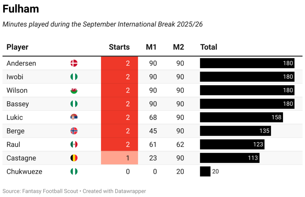 In this piece we noticed how many minutes each FPL activum noticed during the service. GeCaassed Game-Time is sometimes a factor after an international break, although ‘because we are still in the early stages of 2025/26,’ fatigue ‘will probably not be as great as it will be later in the campaign.