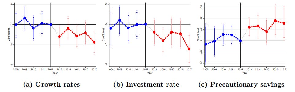 And this seemingly harmless change in legal uncertainty is already causing an important economic reaction. They believe that, during the five years from 2012 to 2017, they have an increase in the legal uncertainty of the affected companies of a standard of the affected companies results in a reduction in business growth of 1.2 percentage points compared to non-tasted companies. Most of these are driven by a decrease in investment activity of 1.3% and an increase in cash by 5.6% to protect against increased legal uncertainty.