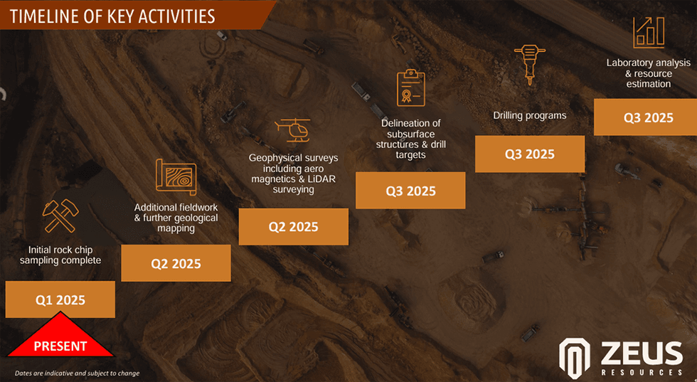 - Quick reconnaissance model: Geophysics survey is underway within a few weeks after license -acquisition, planned trench program and the beginning of the drill of the beginning of the beginning of Q4 2025.
